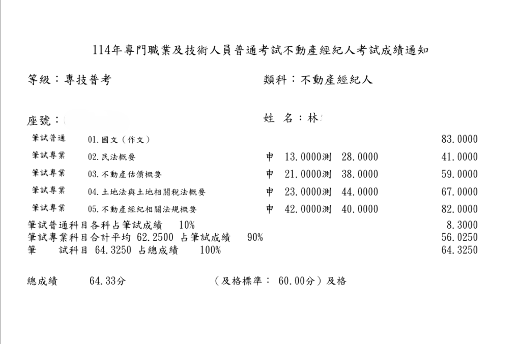 這次上榜,是一個里程碑,但也是專業旅程的開始。未來我會帶著這份努力與感謝,繼續在不動產領域精進自己,讓這張證照真正發揮價值,繼續朝著地政士前進 。