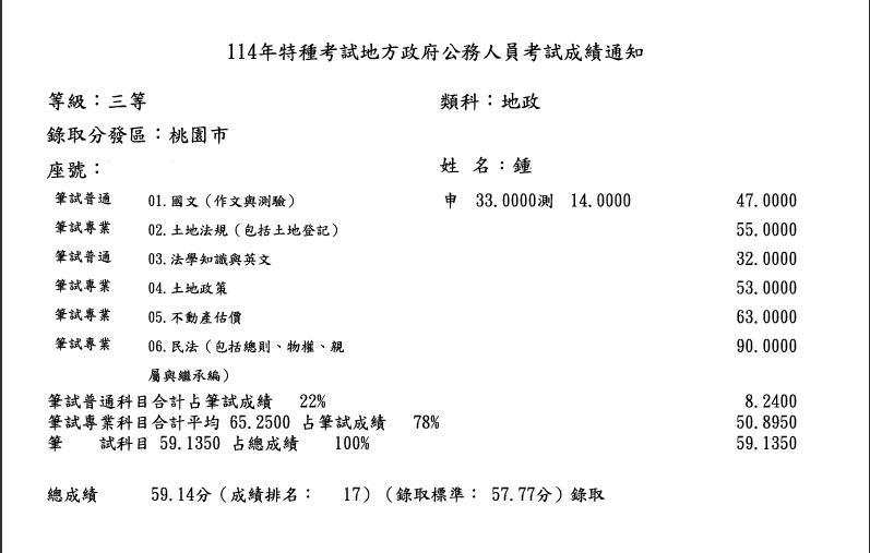 114地方特考上榜生-鍾定恆